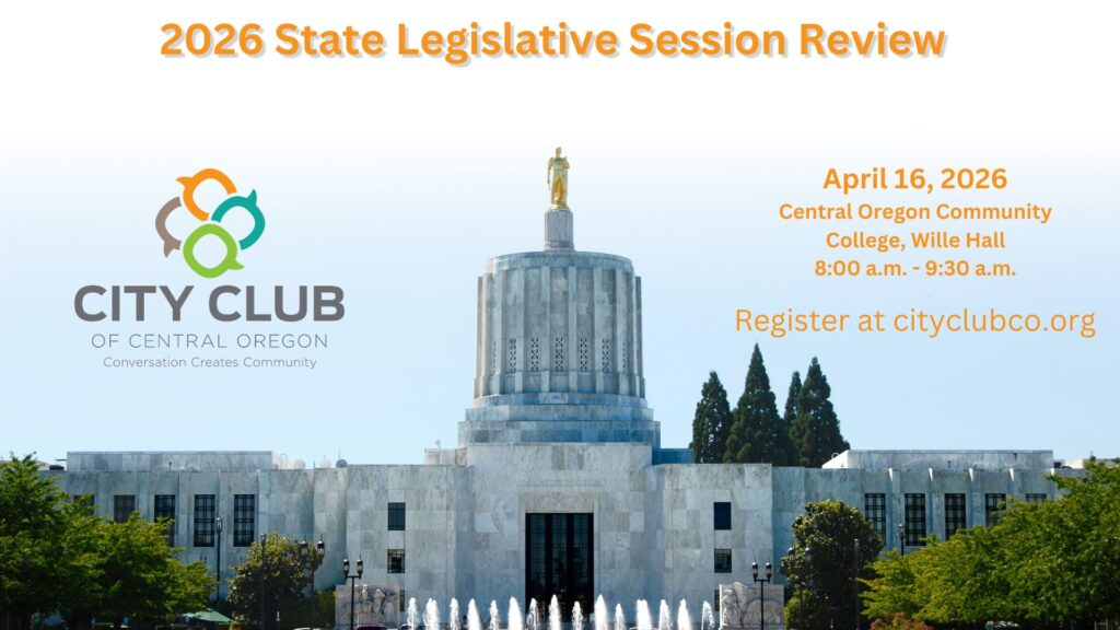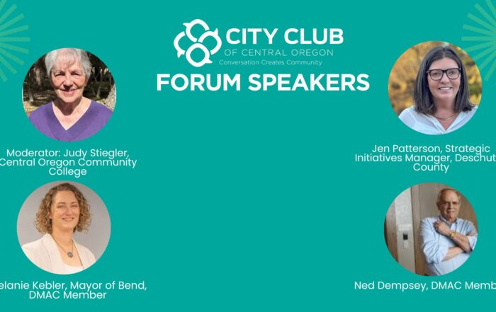 City Club of Central Oregon is where curious minds and engaged citizens come together to explore the most pressing issues shaping our community. Whether you’re here to learn, connect, or lead change, our public forums spark dialogue that transcends partisanship and builds solutions.